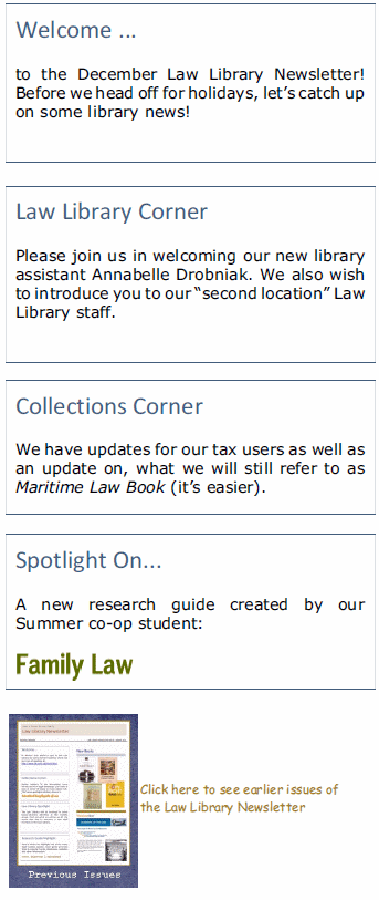 Welcome to the John & Dotsa Bitove Family Law Library Newsletter.